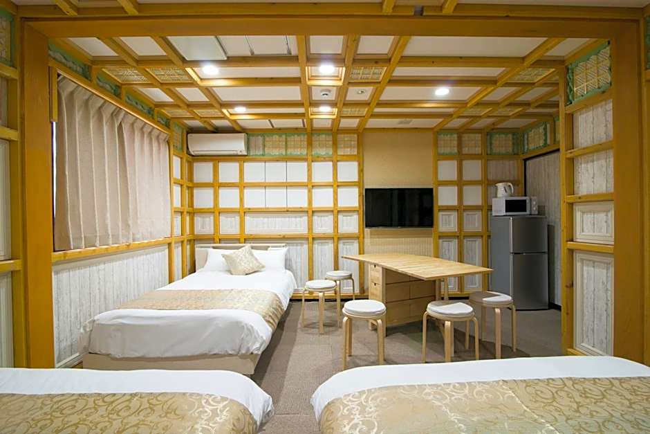 The hot tub and private open-air bath are the special features of this family room. The family room includes a private bathroom, well-fitted with a bath, a shower, a bidet, a hairdryer and slippers. In the well-equipped kitchenette, guests will find a stovetop, a refrigerator, kitchenware and a microwave. This family room is air-conditioned and features an electric kettle, a dressing room and mountain views. The unit offers 3 beds.
